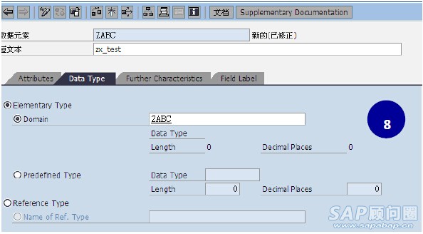 进入字典,维护数据元素,填写‘短文本’,‘domain’。之后双击domain中的ZABC,维护域