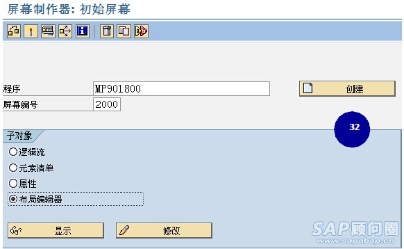 输入事务代码pm01,选择‘屏幕’,填写‘2000’,点击编辑